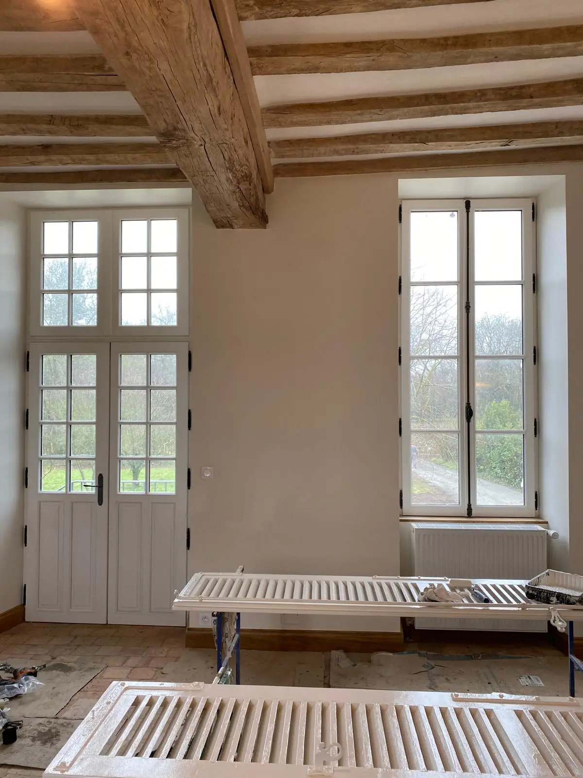 Dans le parc d’un beau château classé, l’ancienne loge du gardien était à l’abandon et nécessitait des travaux de rénovation important. Désireux de rénover le patrimoine avec soin pour mieux le transmettre aux générations futures, nos clients ont pris le soin de sélectionner des matériaux de qualité, durables et élégants. Nous avons ainsi reproduit à l’identique les menuiseries existantes : cintres, petits bois rayonnants avec trompillon central, porte fermière en 2 éléments, assemblage avec soubassement en panneau lambris rainuré, quincaillerie de chez Brionne en fer brossé… tout y est ! Des choix élégants et raffinés, pour une maison qui pourra continuer à traverser les âges de génération en génération.